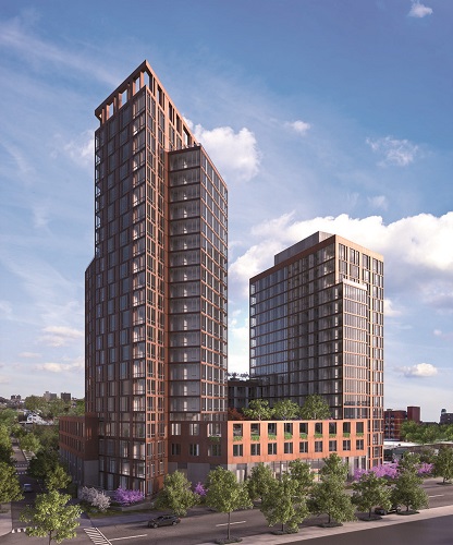 At the base of the building will be a 25,000 square-foot grocery store, Brooklyn Harvest Market, which is expected to open in May. The supermarket will be the first to open in the area for years.
